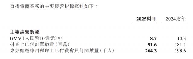 全年总 GMV 从 143 亿元跌到 87 亿元 / 图源:东方甄选